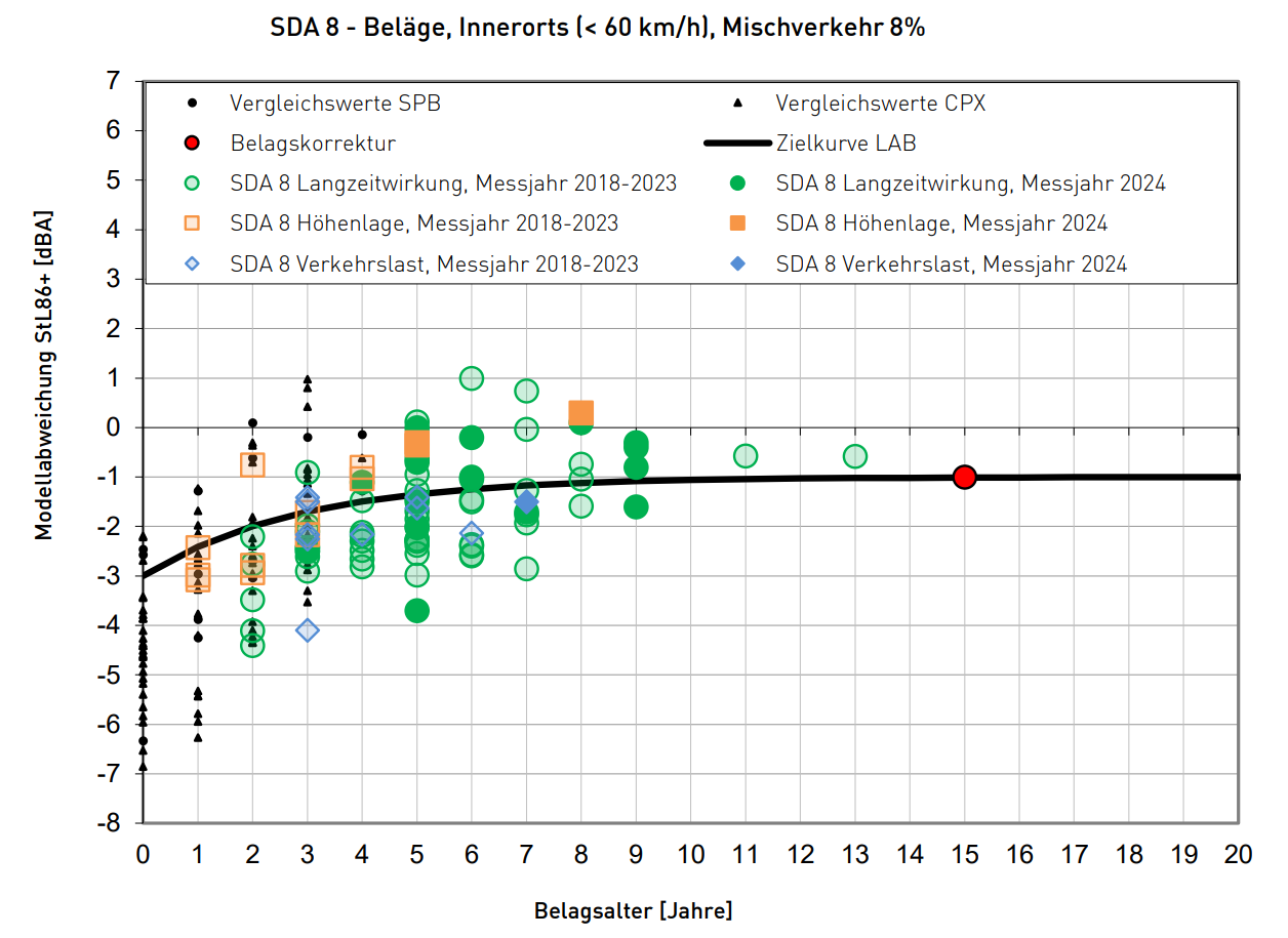 ieDie akustische Wirkung von SDA-Belägen nimmt, wie bei allen anderen Belägen, mit zunehmendem Alter aufgrund der Verkehrsbelastung und anderer Umwelteinflüsse ab. Dabei spielen hauptsächlich die folgenden zwei Prozesse eine massgebende Rolle: