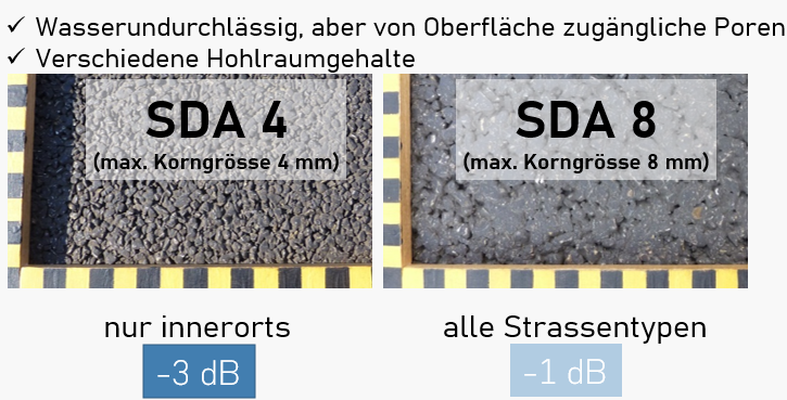 Gemäss Leitfaden Strassenlärm, Anhang 1b1 [1], sind im Rahmen eines Lärmsanierungsprojekts (LSP), bei dem ein Belag ersetzt wird, für SDA 4 und SDA 8 Beläge die inder Tabelleuntenstehenden 1Abbildung aufgeführten erwarteten Wirkungen am Ende der akustischen Lebensdauer einzusetzen.